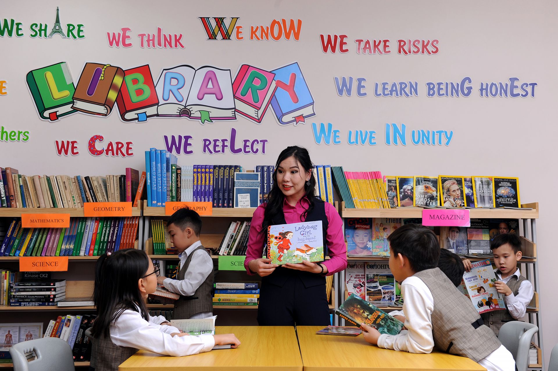 Түүнчлэн 10000 номоос бүрдсэн дунд, ахлах болон бага ангийн сурагчдад зориулсан номын сантай. Сүүлийн үеийн өндөр хүчин чадалтай, утасгүй интернэтэд холбогдсон компьютерийн иж бүрэн 2 кабинет, сургуулийг хамарсан өндөр хурдны WiFi орчин, 120 хүн хүлээн авах хүчин чадалтай цайны газартай.